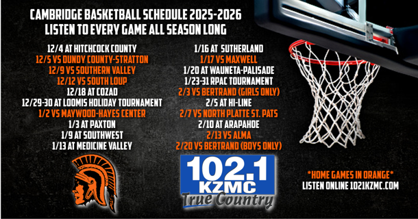 Listen to Cambridge High School Basketball starting Thursday, December 4th. Listen to every game all season long from 102.1 True Country and online 1021kzmc.com.